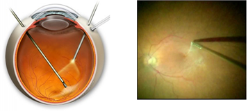 눈 속에 관을 삽입하여 유리체 절제술과 전막 제거술을 시행하게
