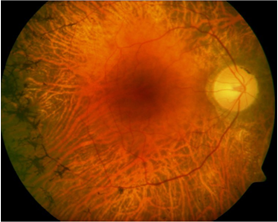 안저검사를 통해 망막색소변성증에 합당한 구조적 이상을
