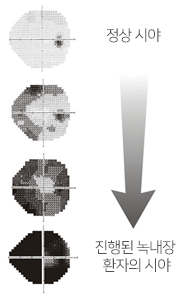 시신경은 눈으로 들어온 빛이 망막에서 전기신호로 변환된 후 뇌로 전달되는 전선과 같습니다. 따라서 시신경이 손상되면 뇌로 가는 전기 신호가 줄어들어 시야가 점점 좁아지게 됩니다.